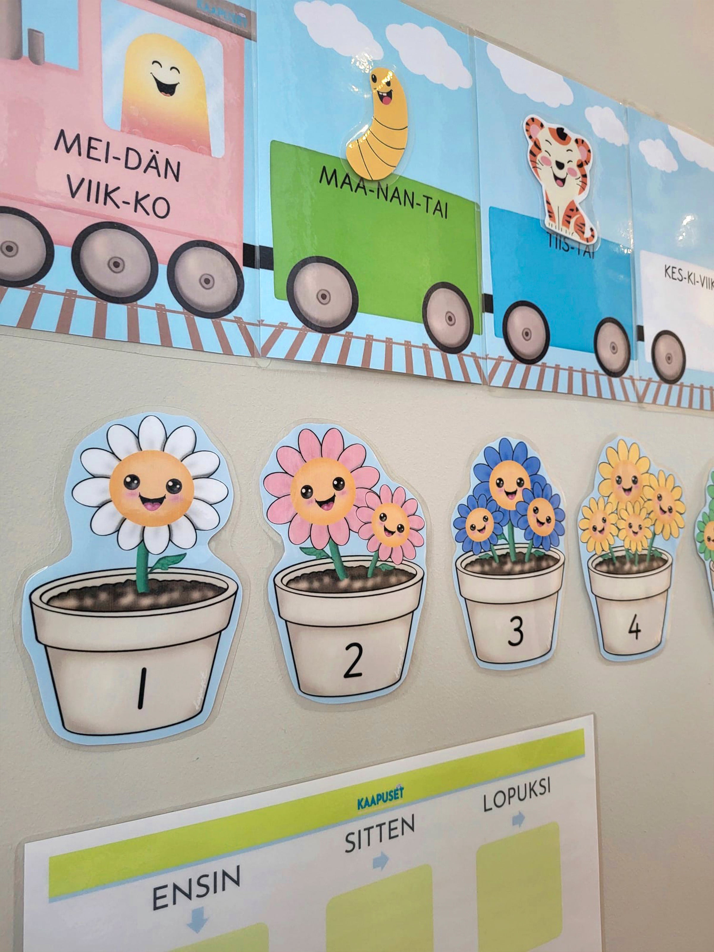 Numerokukkien kanssa pääsette kartuttamaan matemaattisia taitoja, nimeämään värejä ja tuotte keväisen tuulahduksen leikkiympäristöön!