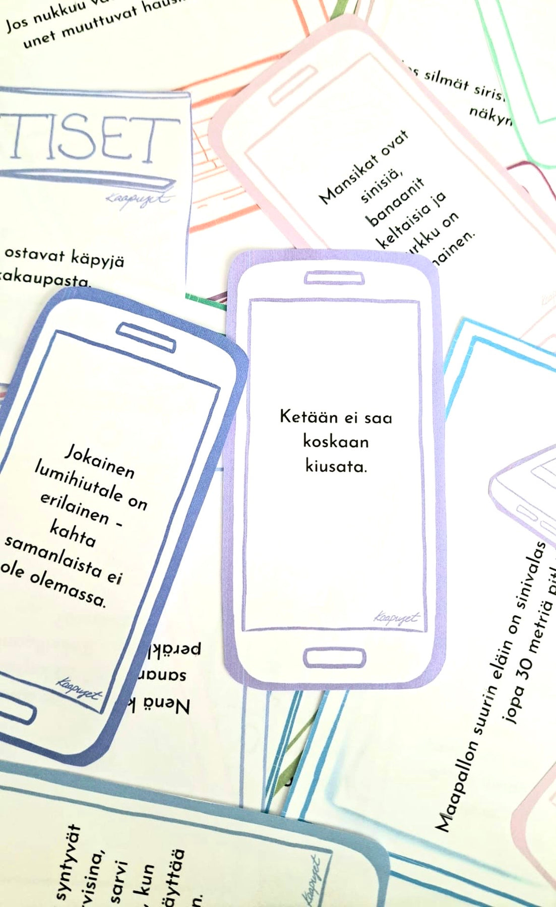 Totta vai höpöjuttuja- korttien parissa pääsette oppimaan monta mielenkiintoista faktaa, vahvistamaan kaveritaitoja ja samalla myös medialukutaito karttuu hauskalla tavalla!