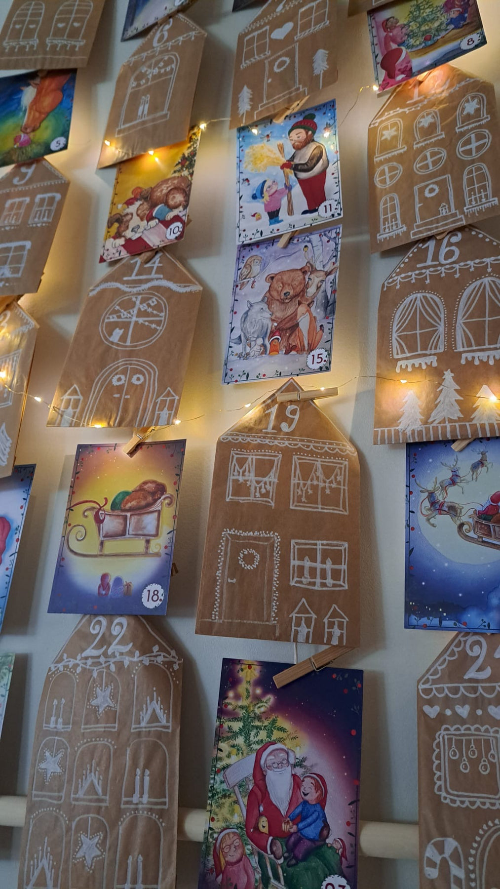 - 24 korttia toimivat joulukalenterin luukkuina.