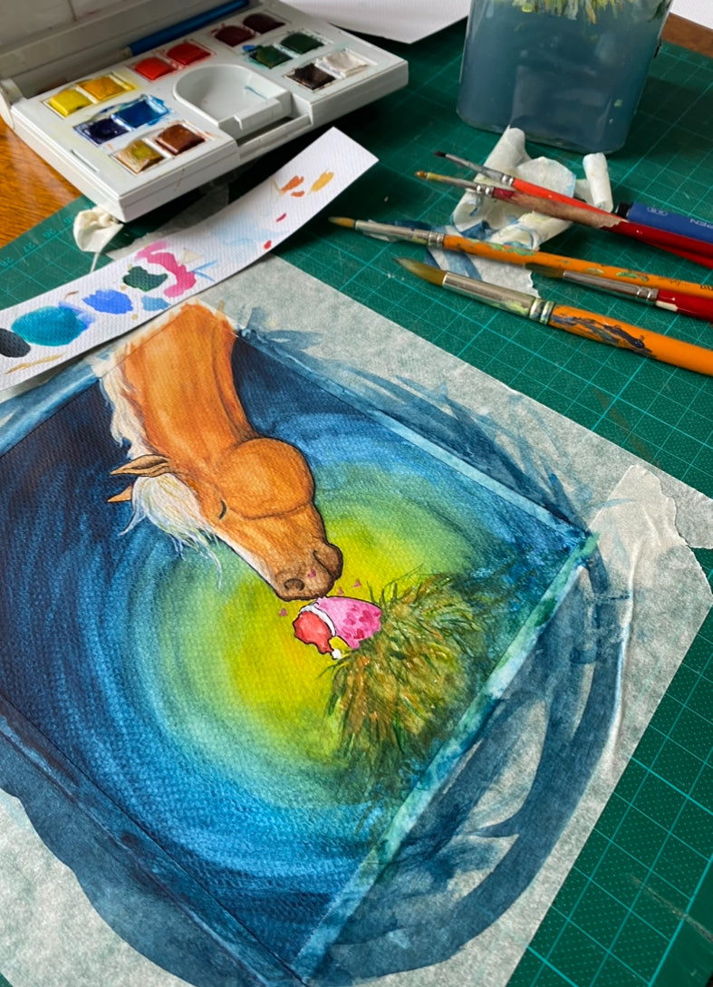 Tutkikaa ihania ja tunnelmallisia käsin maalattuja kuvia ja edetkää kortti kerrallaan kaapusen jouluseikkailussa.