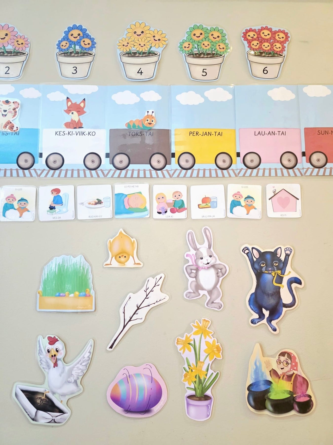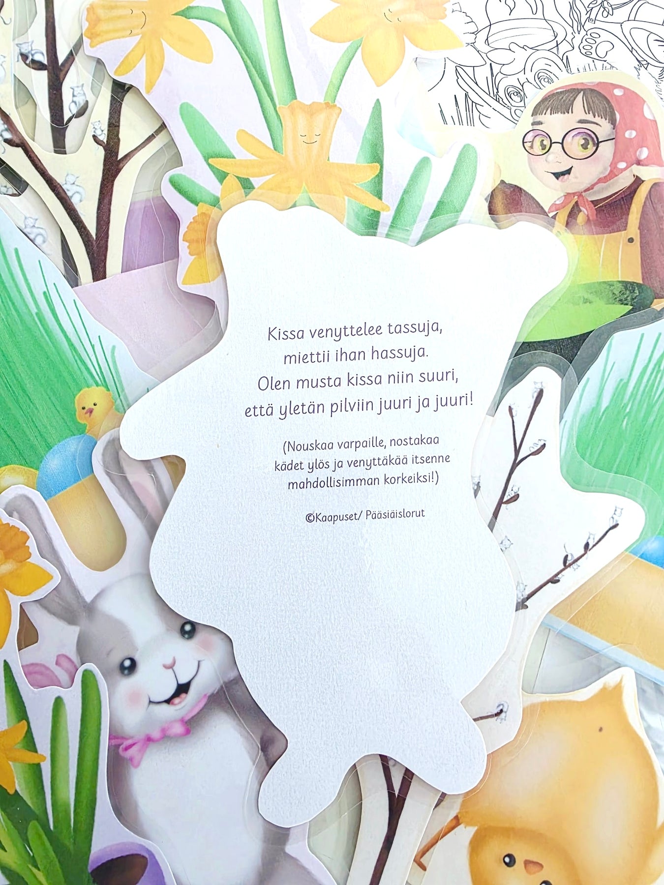 Lorukorteissa yhdistyvät lorut ja jumppakortit. Valitkaa aamupiiriseinältä kortti tai pari joka aamu. Voit pitää myös pääsiäisaiheisen jumpan!