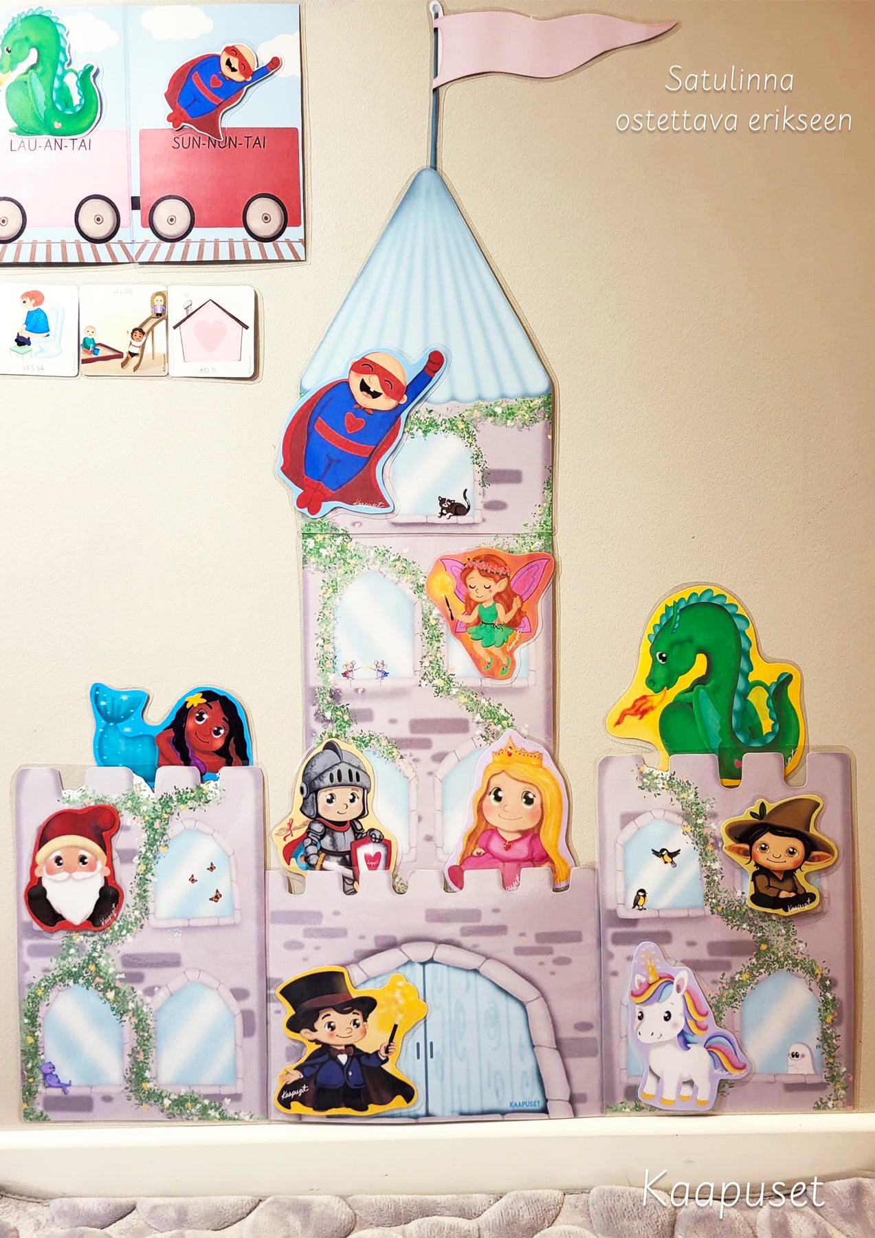 Yhdistä Satuhahmot "Ketä paikalla? - Satulinnaan"! Saat kauniin ja leikkiin innostavan elementin ryhmätilaan, josta lorukortin voi napata helposti loruttelua varten.