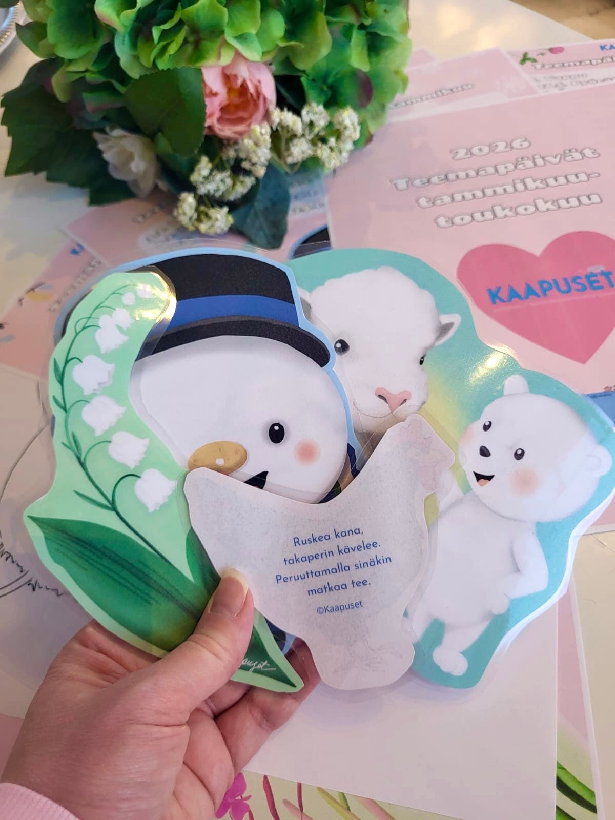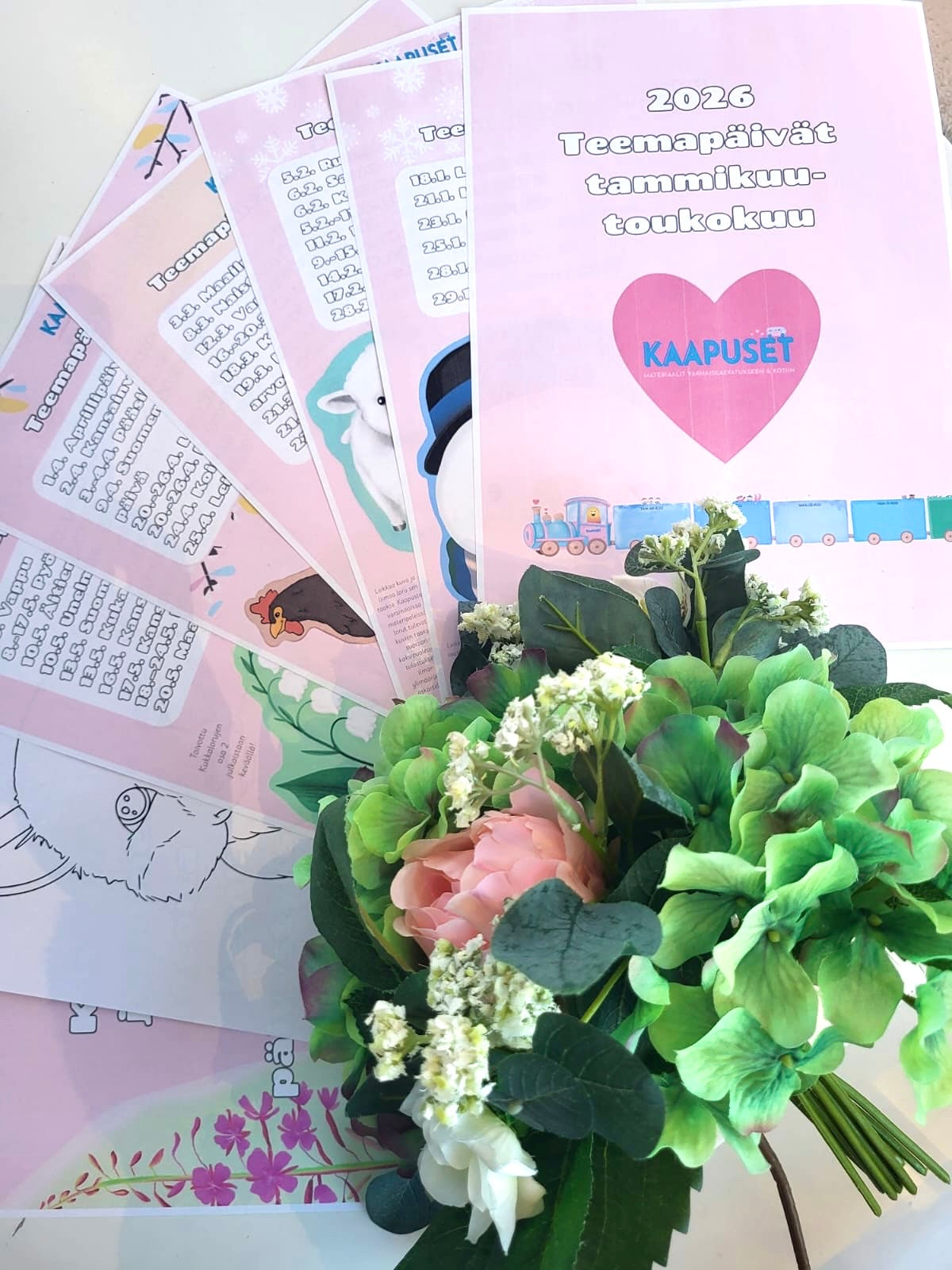 Tämän materiaalin mukana saat kevätkauden 2026 teemapäivät koottuna yhteen sekä lahjaksi ilmaisia pieniä yllätyksiä aina kyseisen kuukauden teemapäivään sopien.